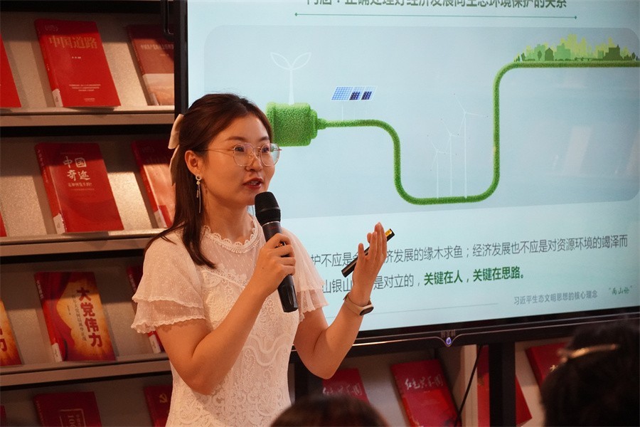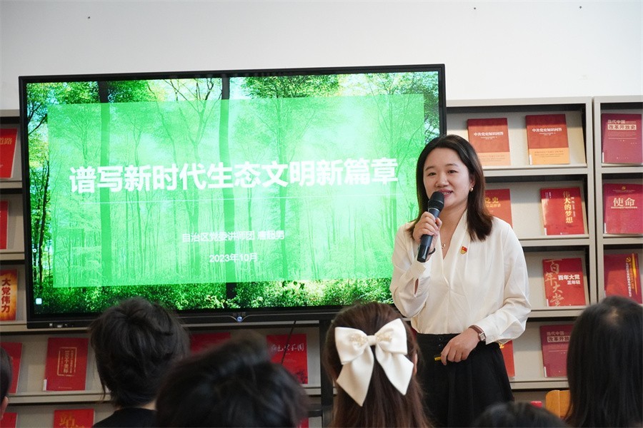 报告会上,中共北海市委党校党史党建教研室主任、讲师付雪原,自治区党委讲师团四级主任科员唐超男,南宁师范大学学生廖舒兰等,分别以《“生态留白”千秋计 不负青山不负人——习近平生态文明思想的“北海实践”》《谱写新时代生态文明新篇章》《共守国之大美 青春奋发有为》为主题,通过北海生态文明建设成果、浙江余村经济转化等亲历、亲闻的案例,从不同层面、不同角度高屋建瓴、深入浅出、以小见大地对习近平新时代中国特色社会主义思想进行细致的解读和阐释,为现场观众带来了一场精彩纷呈、形式多样的宣讲。
