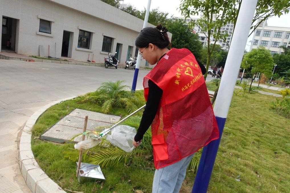 活动中,各位党员同志齐心协力清除校园内的杂物,将死角的卫生清扫干净。同时制止乱丢垃圾的不文明行为,向路过师生倡议保护环境卫生从点滴做起,从身边环境做起,希望通过全体师生共同努力,创建清洁文明美丽校园。(黄元文/摄)