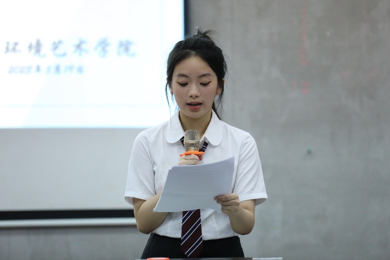 接着,林珍娴同学又从专业知识、学习经验两方面与同学们做了分享。她指出环境设计的中心思想,即协调“人—建筑—环境”的相互关系,使其和谐统一,形成完整、美好、舒适宜人的人类活动空间。她鼓励同学们树立正确的学习态度,发现自身存在的问题,找到适合自己的学习方法。