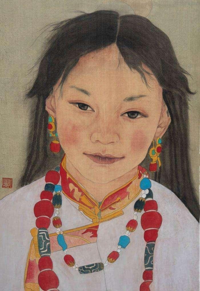 王斐《西藏女孩》50×70cm 指导老师:熊晓翠