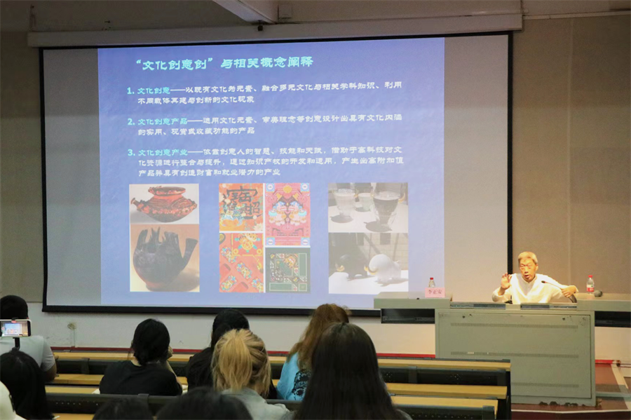 讲座一开始,李正安教授以文创设计的目标和任务为切入点,阐述开设《文创产品设计之思》这门课程的原因。他表示,文创设计有两大目标:依从一定文化元素经设计转化为产品是文创设计的首要目标;将有文化创意的设计融入产品是文创设计的主要目标。明确文创设计的目标与任务,有助于把握文创设计的方向,才能更好地设计出精美合宜的文创产品。