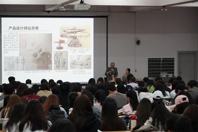 讲座伊始,北畠耀教授以幽默风趣的语言对达芬奇个人以及蒙娜丽莎作品展开了专门介绍。他以具象四个部分展示达芬奇辉煌成就的一生经历。北畠耀教授表示世人对达芬奇的历史评价极高,达芬奇的才能在丰富多彩的领域中得到了极大发挥,北畠耀教授还列举总结了达芬奇在八个领域下的才能并通过讲述达芬奇绘画蒙娜丽莎作品的趣事经历,引导广大师生勤于思考,强化观察能力,追求完美,从而提高自身创作的水平。