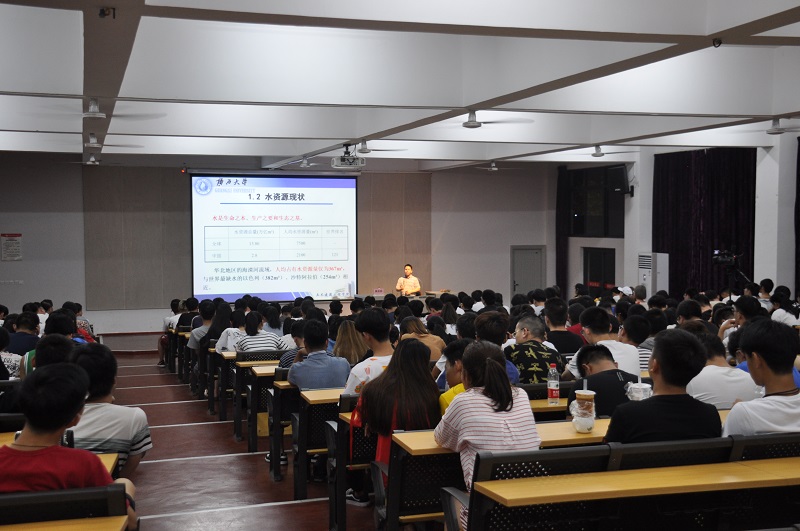 讲座开始,莫崇勋教授阐述了水资源的基本情况 ,从广义和狭义两个方面来讲述水资源的定义,莫崇勋教授举例说明水是生命之本、生产之要和工业之基,运用联合国缺水划分标准来反映出中国城市中有三分之二的城市出现供水不足,简述了水资源的重要性,分享了关于“水资源面临的问题”的图片,引起现场师生的沉思。