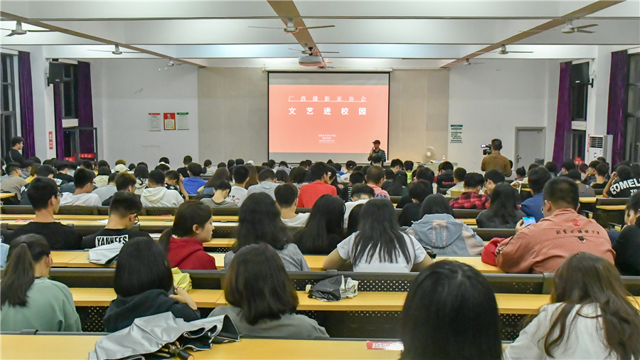 讲座过程中,蓝建强老师通过实例讲解人体艺术拍摄,他表示,画家是用画笔来进行画画,摄影则是用光来画画,再次强调布光在摄影过程中的重要性。又通过两部展现广西美好风景的微电影,建议摄影专业的学生有机会多出去采风,进一步提高个人审美和专业素养。
