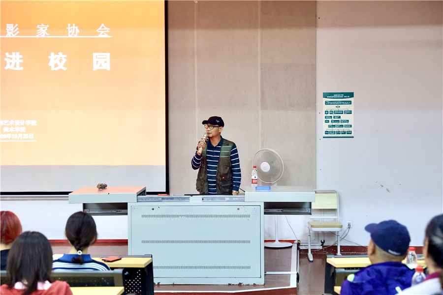 2020年10月25日晚7点于我校西区伦理楼107,国家一级摄影师蓝建强老师为我校师生带来一场题为《人像室内外布光技巧》的精彩讲座,现场座无虚席。本次讲座由我校美术学院摄影系主任李炫勋主持。