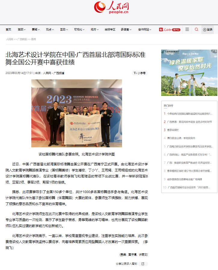 人民网:北海艺术设计学院在中国·广西首届北部湾国际标准舞全国公开赛中喜获佳绩