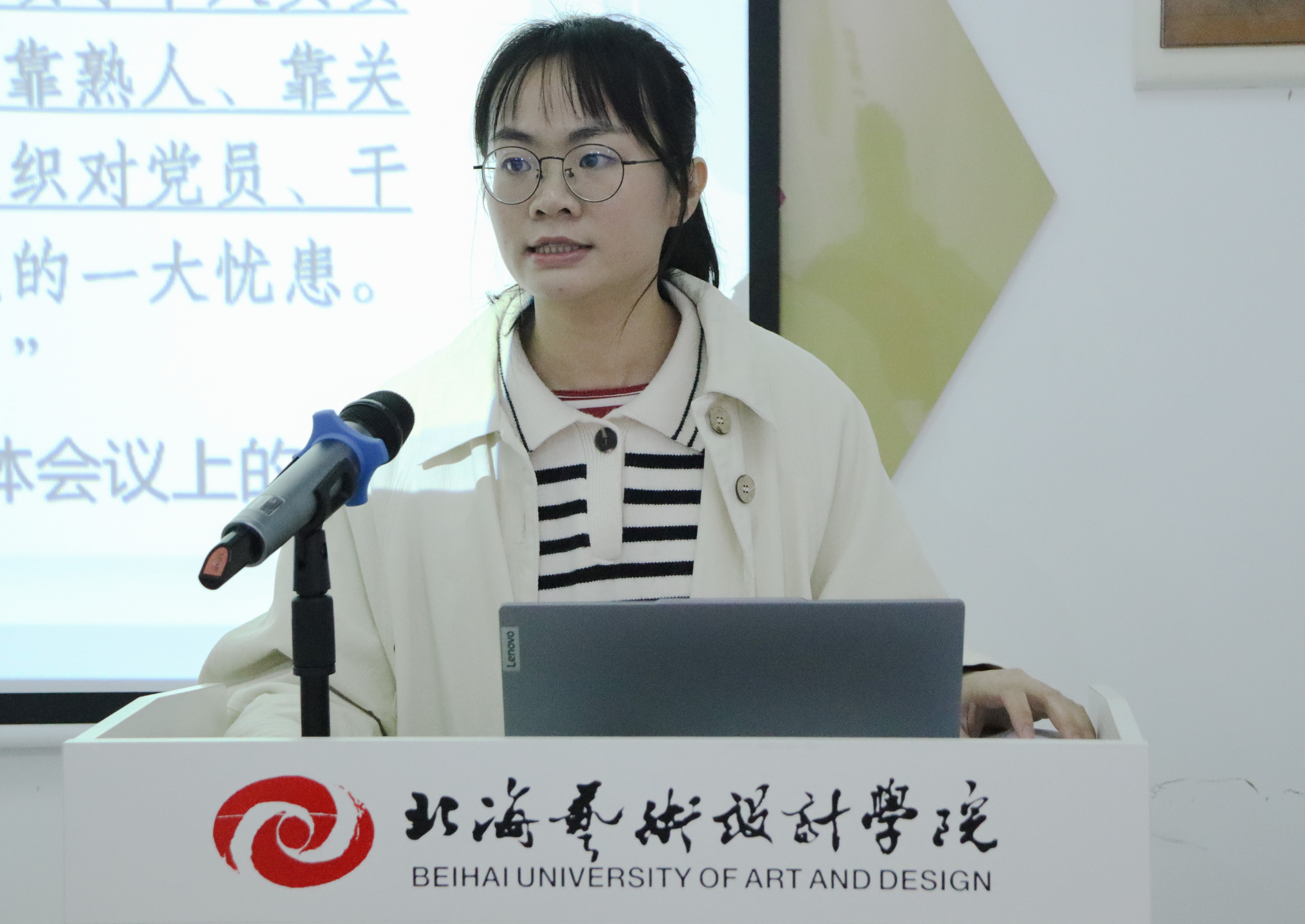 活动期间,曾婷紧扣活动主题,围绕“读原著、学原文、悟原理”展开分享。在“读原著”环节,她以沉浸式AI音频朗读为引,带领现场人员逐字逐句重温原著全文,筑牢理论学习的文本根基。“学原文”环节中,她从文章写作背景、核心内涵、历史意义三个方面系统拆解《反对自由主义》的理论脉络,清晰梳理了自由主义的错误倾向及其危害,助力教师们深刻认识到文章在巩固党的思想统一、严明组织纪律、密切联系群众等方面的重要作用。在“悟原理”环节,她聚焦理论精髓与现实关照,从核心原理、现实意义、延伸思考三个层面展开深入分享。她表示,《反对自由主义》虽篇幅精炼,却蕴含着马克思主义世界观、方法论与中国革命实际相结合的深刻逻辑,是马克思主义中国化的重要文献,为新时代教师加强思想建设、严守政治纪律提供了重要遵循。讲解尾声,她以“我是否犯了自由主义”为反思,结合自身入党初心与从教历程进行了深刻自我剖析,倡导教师要主动开展思想斗争,反对自由主义。整场读书分享过程中,曾婷语言通俗易懂,案例贴合实际,既有对理论的深度解读,又有对现实的精准观照,真正达到了入脑入心的学习效果。