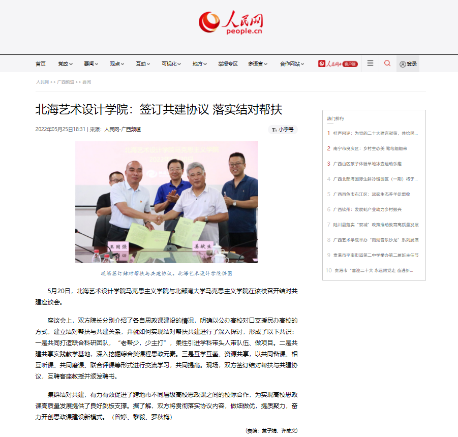【人民网】北海艺术设计学院:签订共建协议 落实结对帮扶