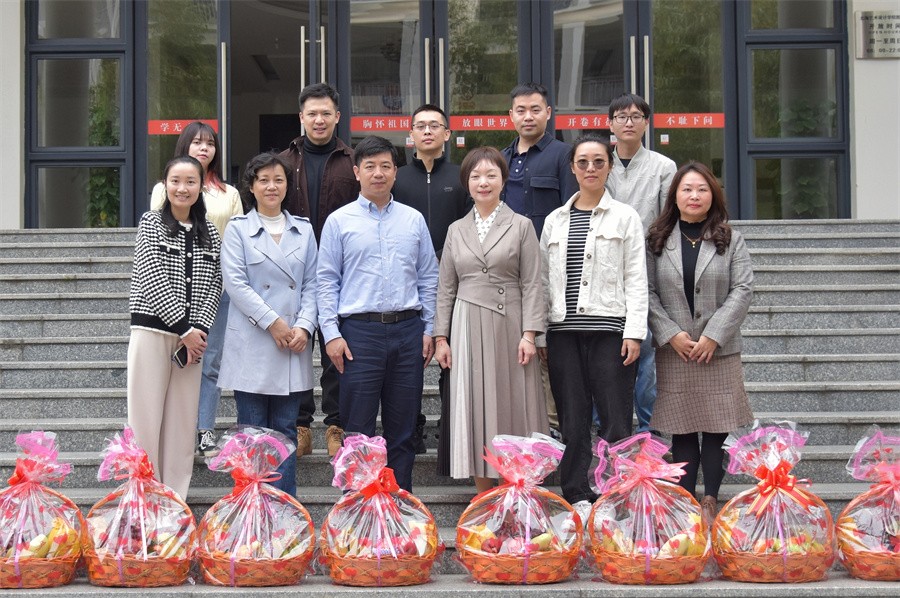 (包贤超书记向学校侨联委员赠送果篮)
