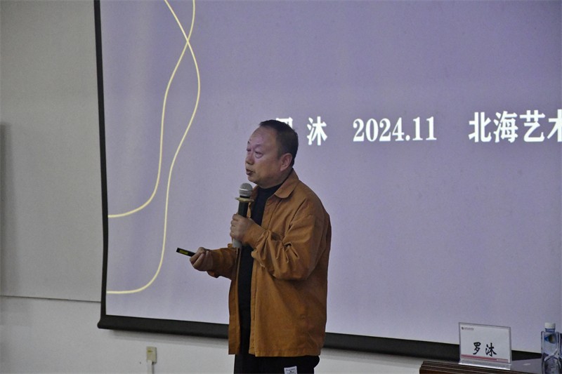 讲座伊始,罗沐教授就“怎样构建动画短片创作的编导思维”与现场师生展开讨论并引入主题授课。他指出,动画领域的人应具备“艺术+科技+商业”三合一的综合思维,品牌拉动性,拓展联动性,潜在培养性是动漫游戏产业不可忽视的三个突出特性。
