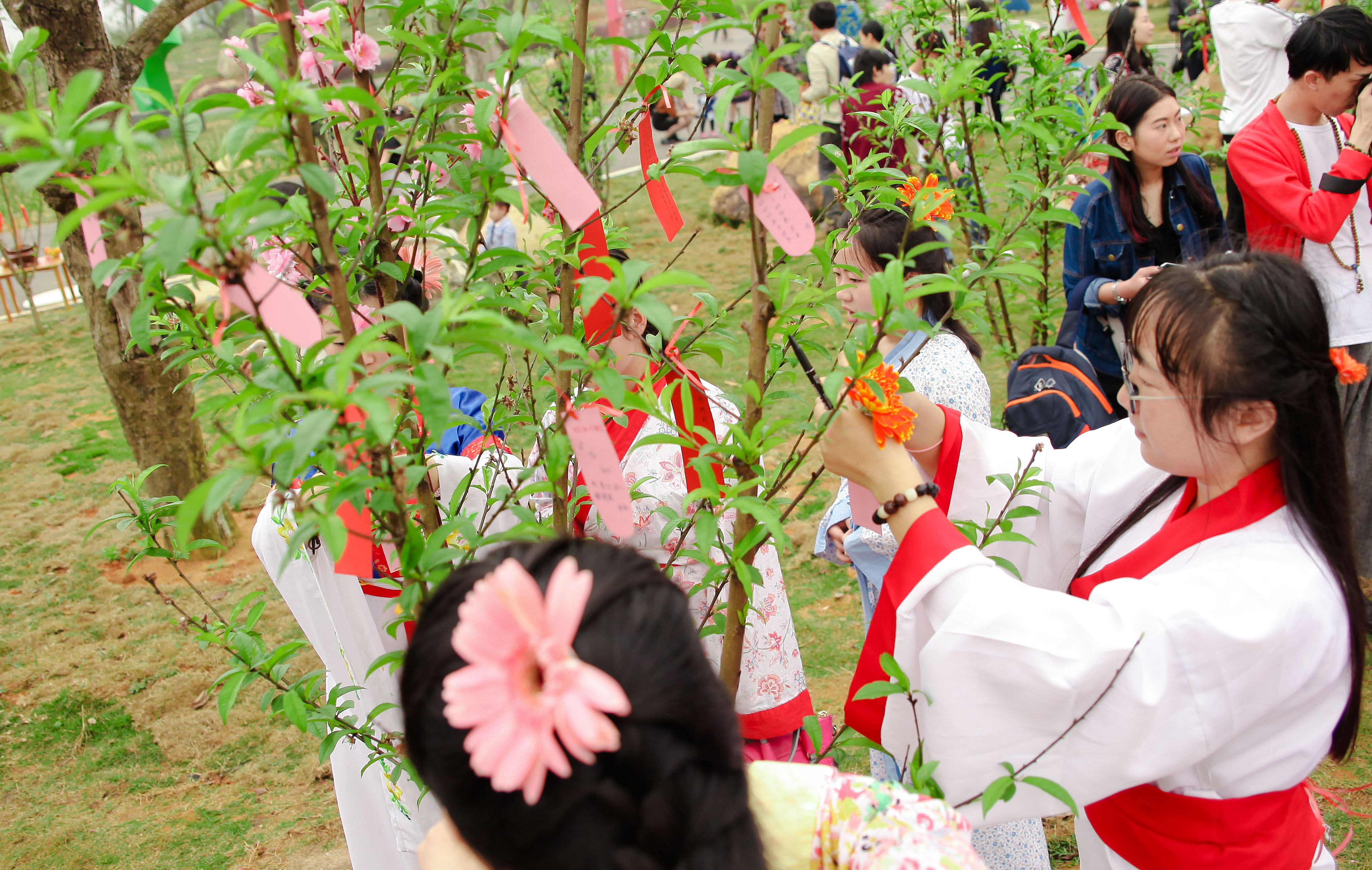 师生们将写满心愿的五色彩纸粘在花枝上,表达人们对春天以及国家的美好祝愿。中华文化是维系全体中国人的精神纽带,具有强大的生命力,它对中华民族具有很大的吸引力,是推动中华民族不断前进发展的内在动力,大力弘扬中华优秀的传统文化对中国的未来发展有着重要的意义。