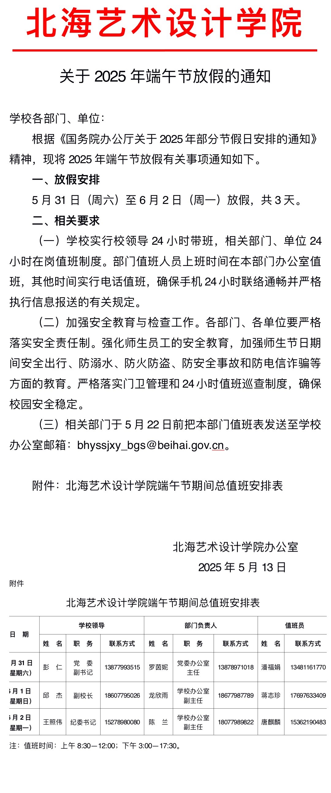 关于2025年端午节放假的通知