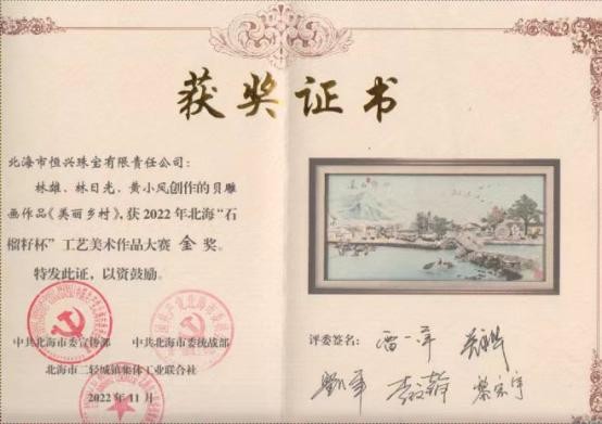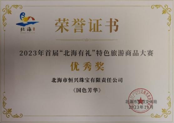 2023作品《国色芳华》获首届“北海有礼”特色旅游商品大赛优秀奖;