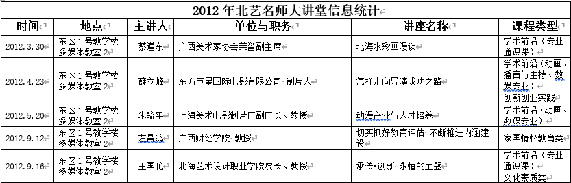 2012年北艺名师大讲堂信息统计