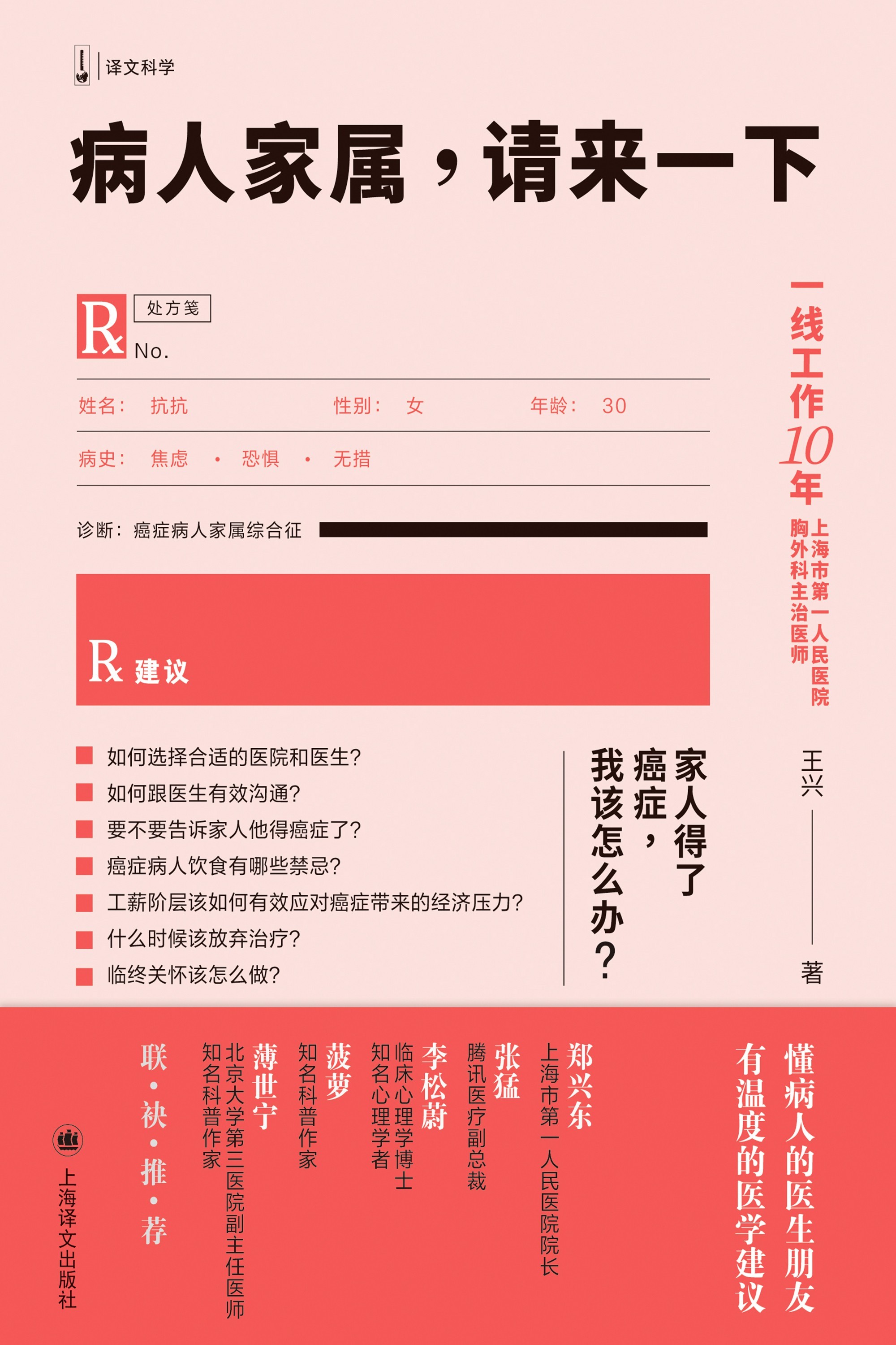 本书主要围绕病人家属这一群体展开叙述。书中涉及了多种疾病,包括癌症、心脏病、脑血管疾病等,涵盖了大多数人群的疾病体验。通过这些疾病的案例,展示了病人家属在应对疾病时的无助、焦虑、恐惧和希望等情感。作者还细腻地讲述了病人家属在面对疾病时的心理变化、情感冲突以及应对策略,同时通过各种案例阐述了家属在面对疾病时应如何调整心态、如何与病人共同应对疾病的方式,为我们提供了看待疾病的全面视角。