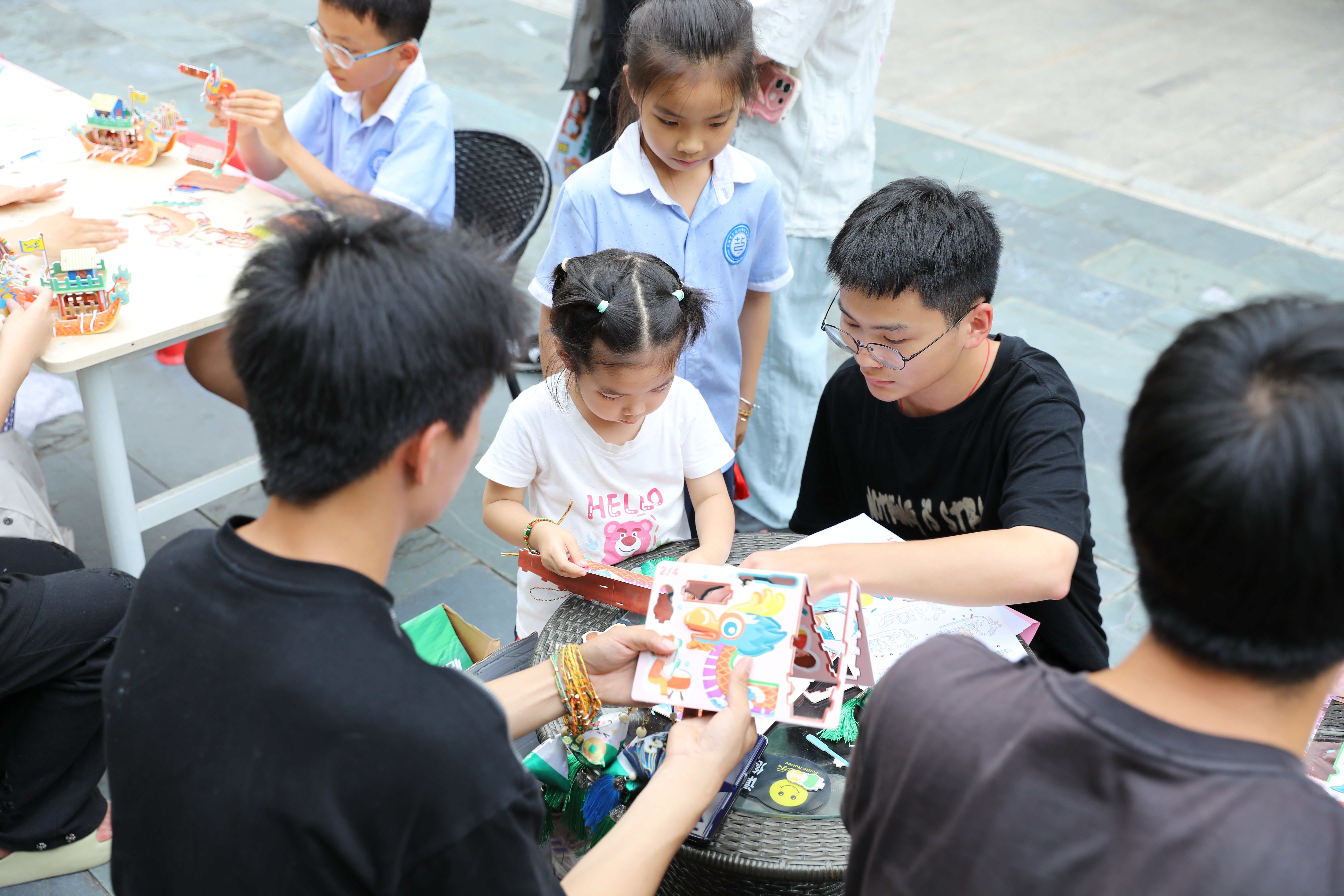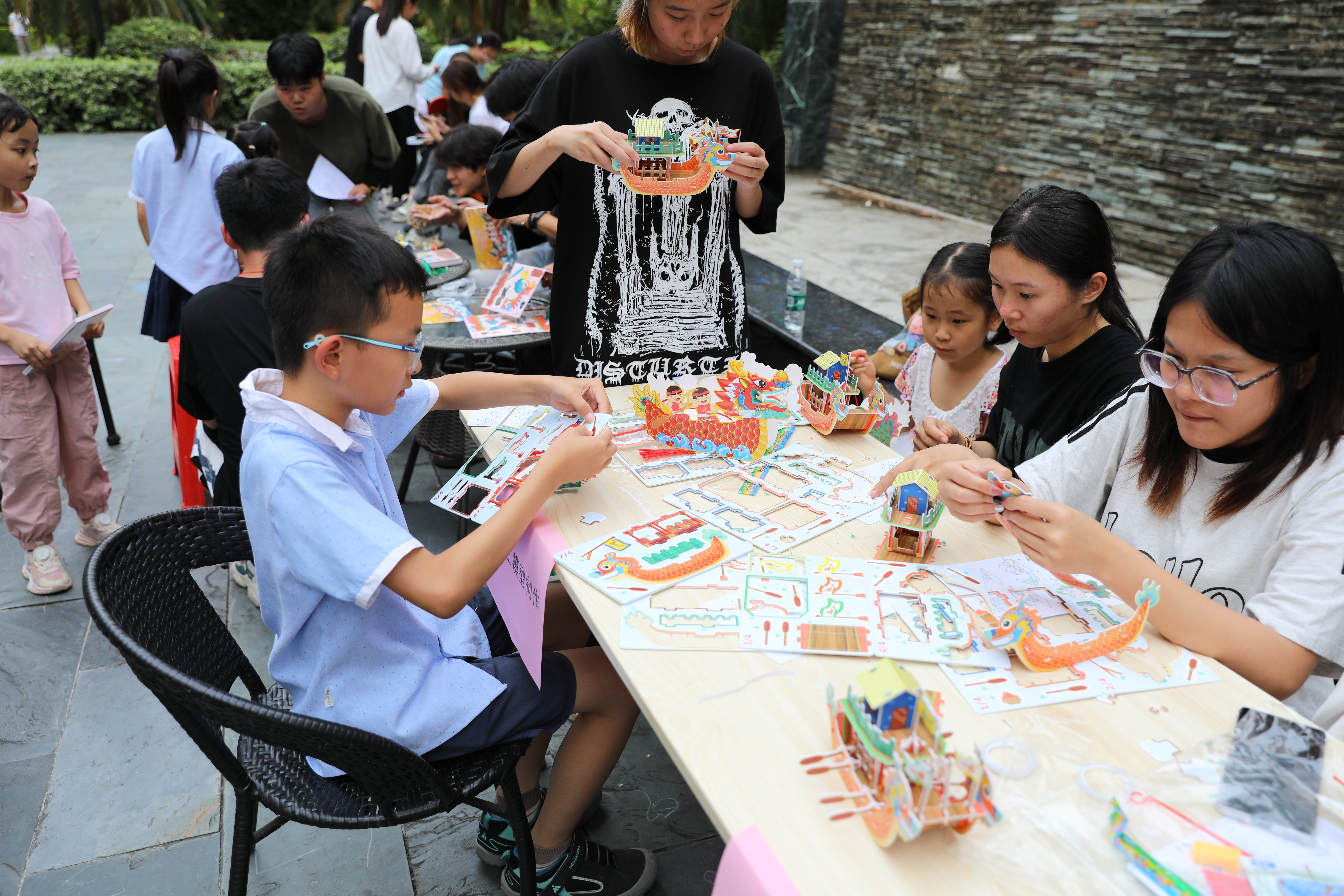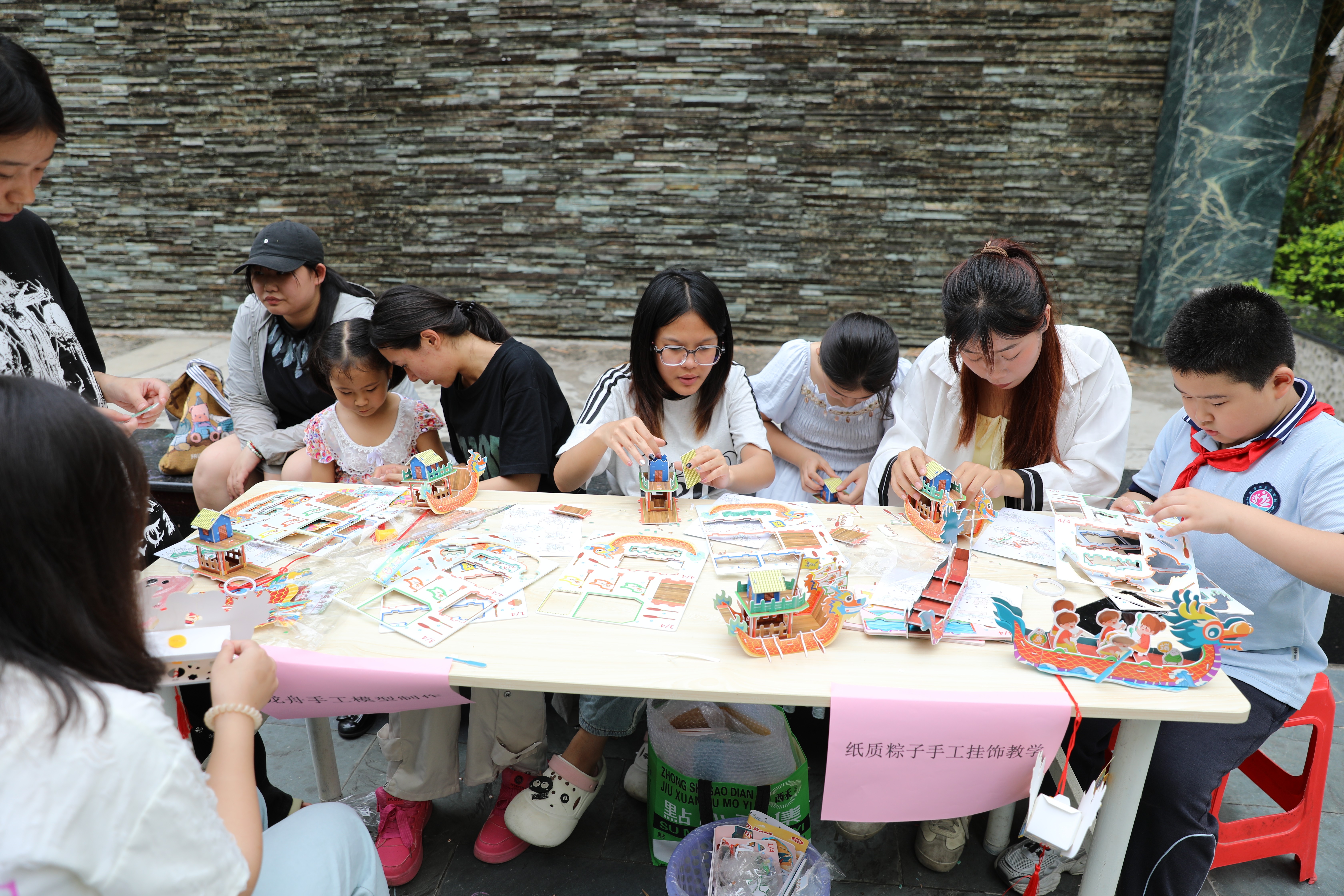 本次活共14名受资助的志愿者参与,服务对象主要是社区内儿童。活动内容丰富多样,包括DIY纸质粽子手工挂饰教学,纸质龙舟手工模型制作,端午节知识问答等环节,旨在全方位、多层次地传播端午文化,营造浓厚的节日氛围。
