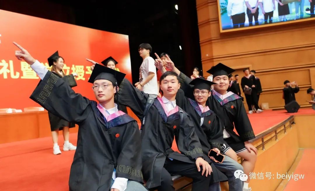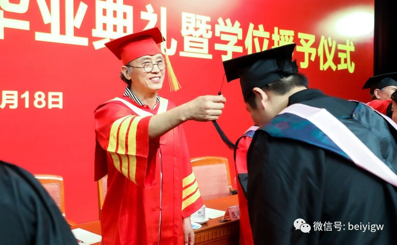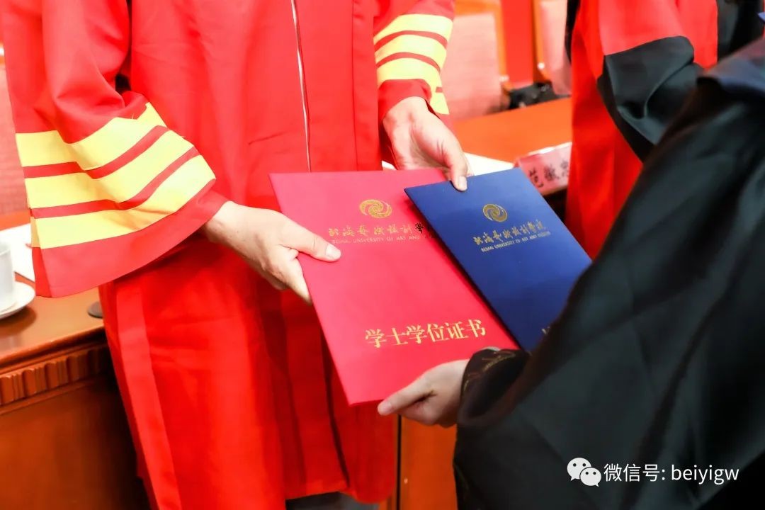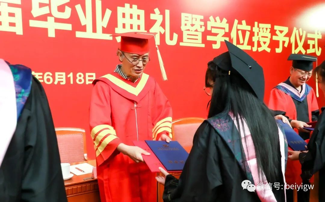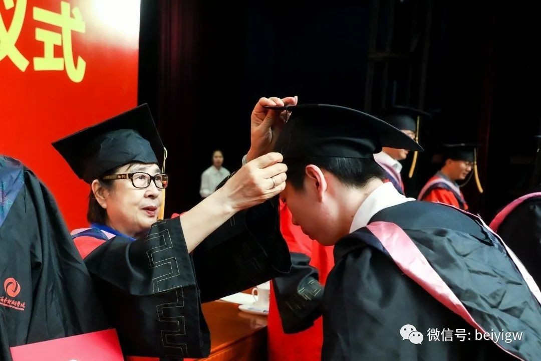 典礼上,学校学位评定委员会委员为毕业生代表颁发毕业证书和学位证书并一一拨穗正冠,合影留念。师长声声祝福温情入耳,眼含欣慰扶手相送;学子毕业礼成,意气风发,振翅高飞。