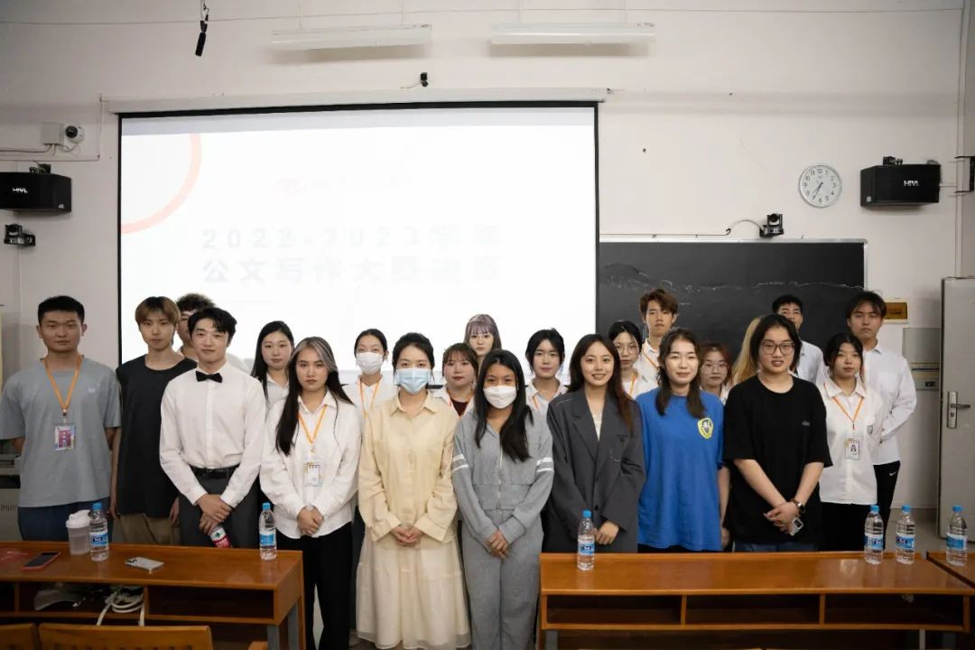在活动的最后,参赛获奖的同学们与工作人员合影留念。此次公文写作大赛到这里就圆满结束了,期待与同学们下次再见!(艾斌、焦娃、翟晶晶/摄)