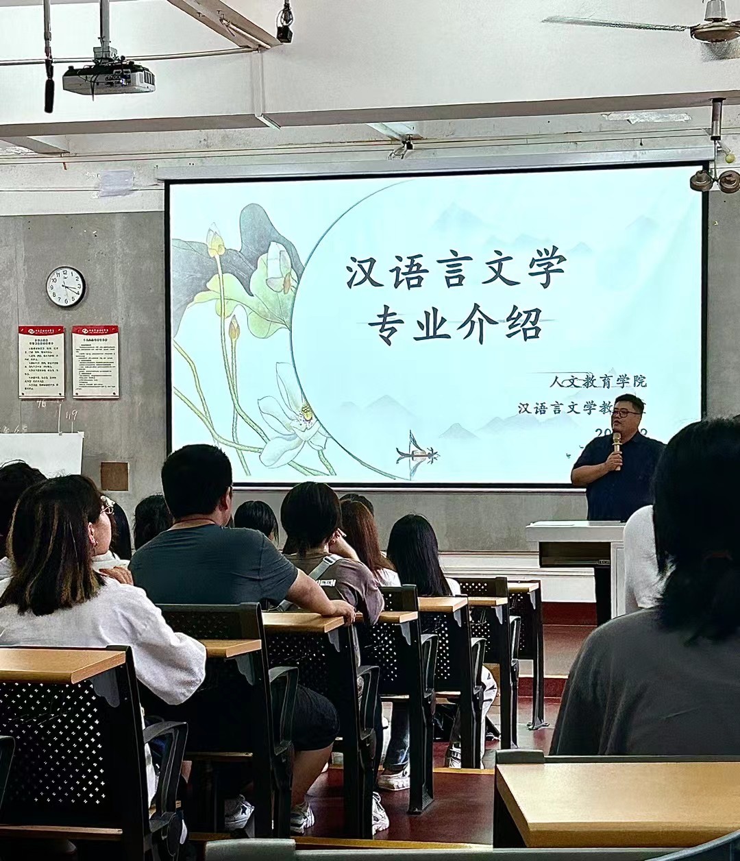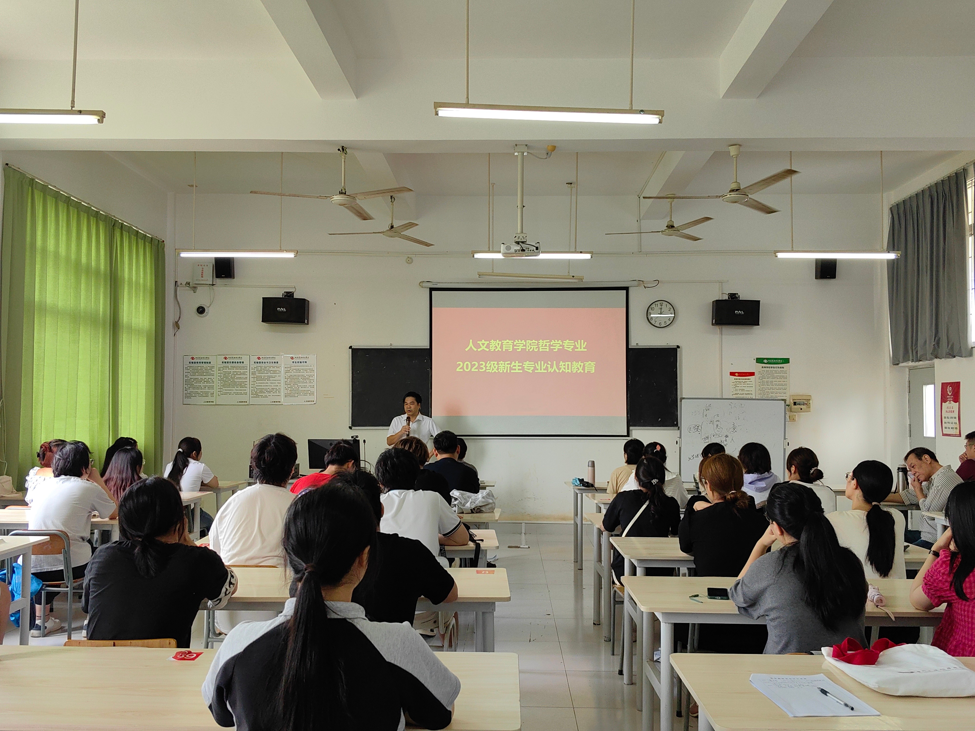 增进我院2023级新生对学院专业建构了解加强学生对本专业学习目标的理解,帮助新生们系好大学学习的第一颗“纽扣”9月11日至14日,我院汉语国际教育、汉语言文学、哲学等专业分别为2023级新生召开专业介绍会。部分教师及全体新生参与了本专业介绍会。