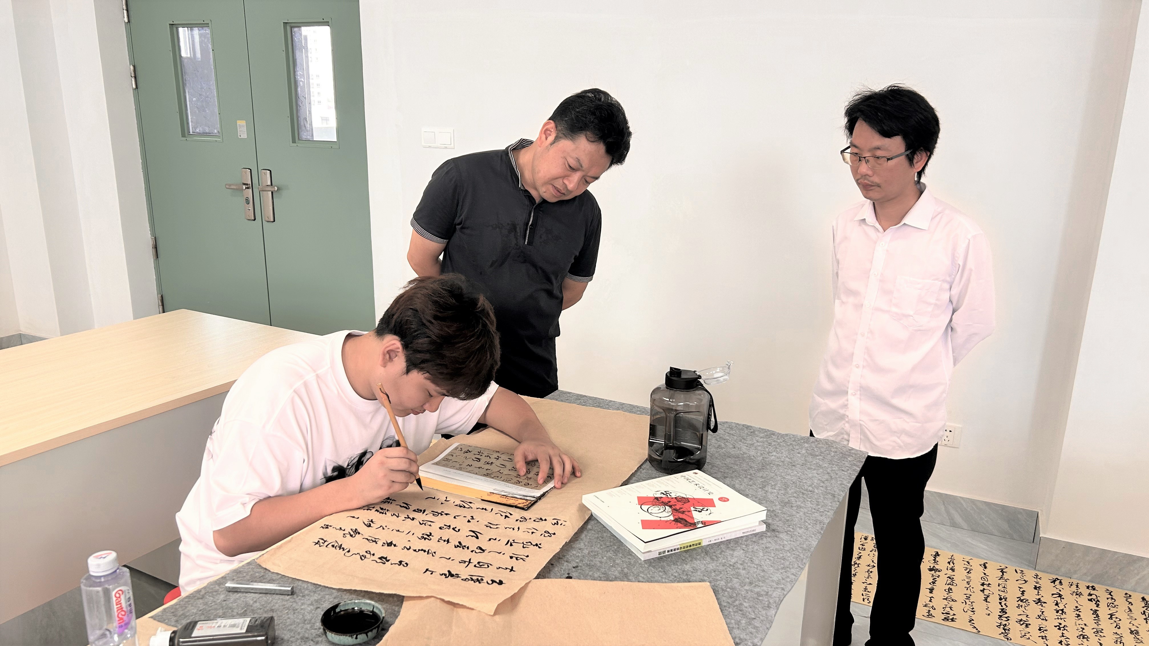 苏乃从副院长陪同周剑初老师对书法学2023级学生《草书临摹》课程的教学情况进行参观,并对书法学院学生学习、教师教学、科研展览以及学院发展等情况进行介绍。期间,周剑初老师与黎东明院长对书法学院的教学与发展情况进行深入交流,在关切学生学习情况的同时,对专业问题进行答疑解惑。