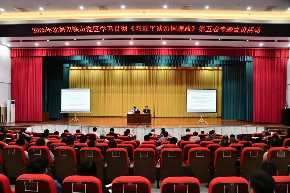 10月22日,我院曾家华教授以自治区党委讲师团特聘教授(专家)身份,应邀赴北海市铁山港区作学习贯彻《习近平谈治国理政》第五卷专题宣讲报告。