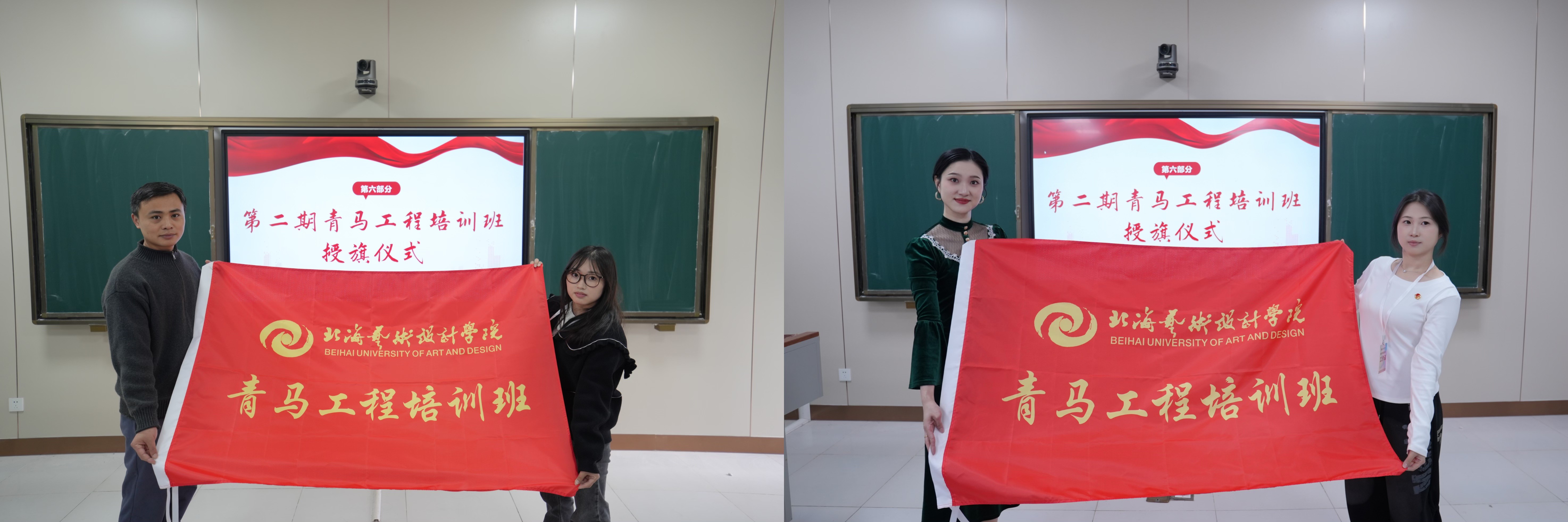 仪式最后,现场举行第二期“青马工程”培训班授旗仪式        哲学学院授旗仪式                          教育学院授旗仪式