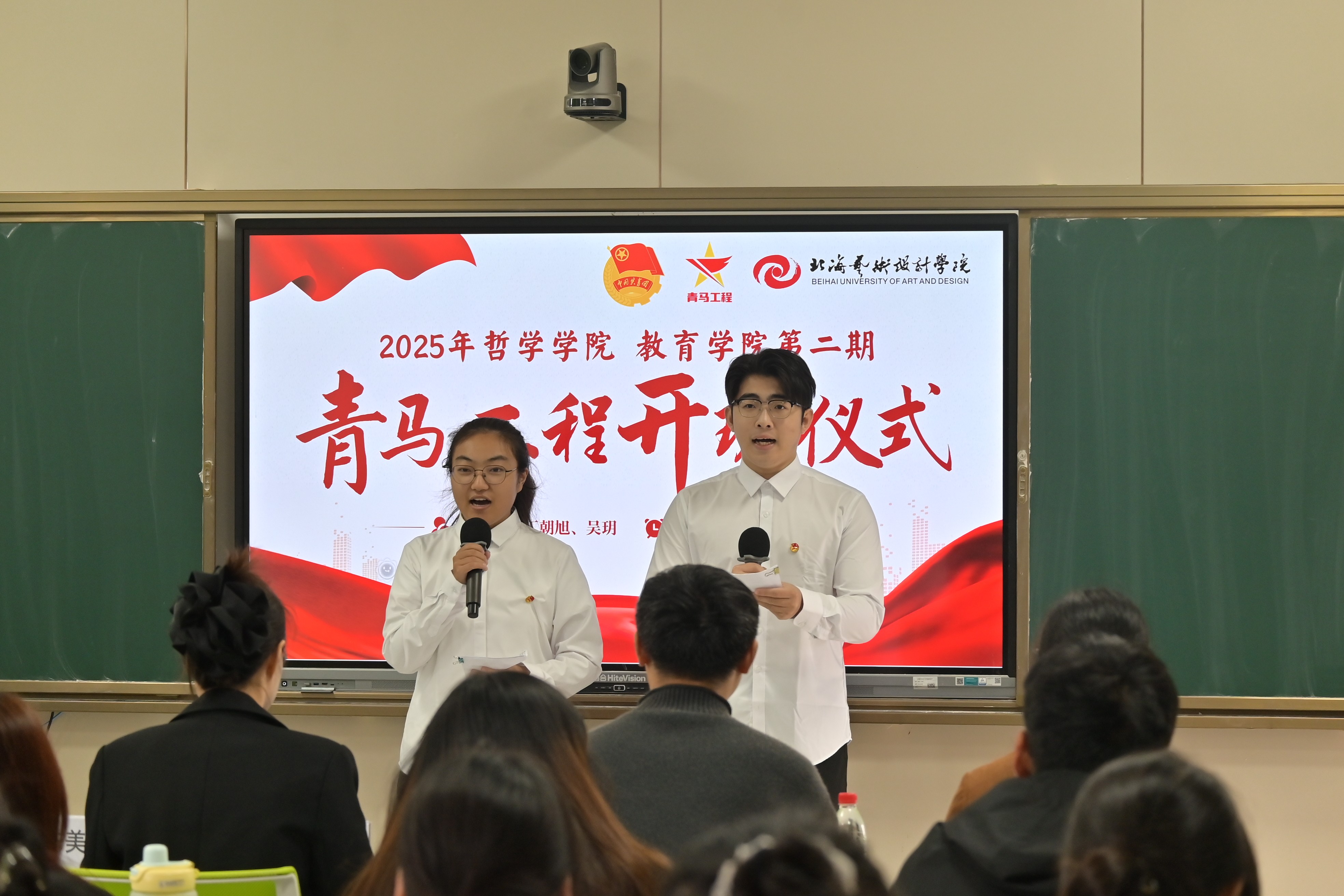 主持人吴玥、丁朝旭宣布开班