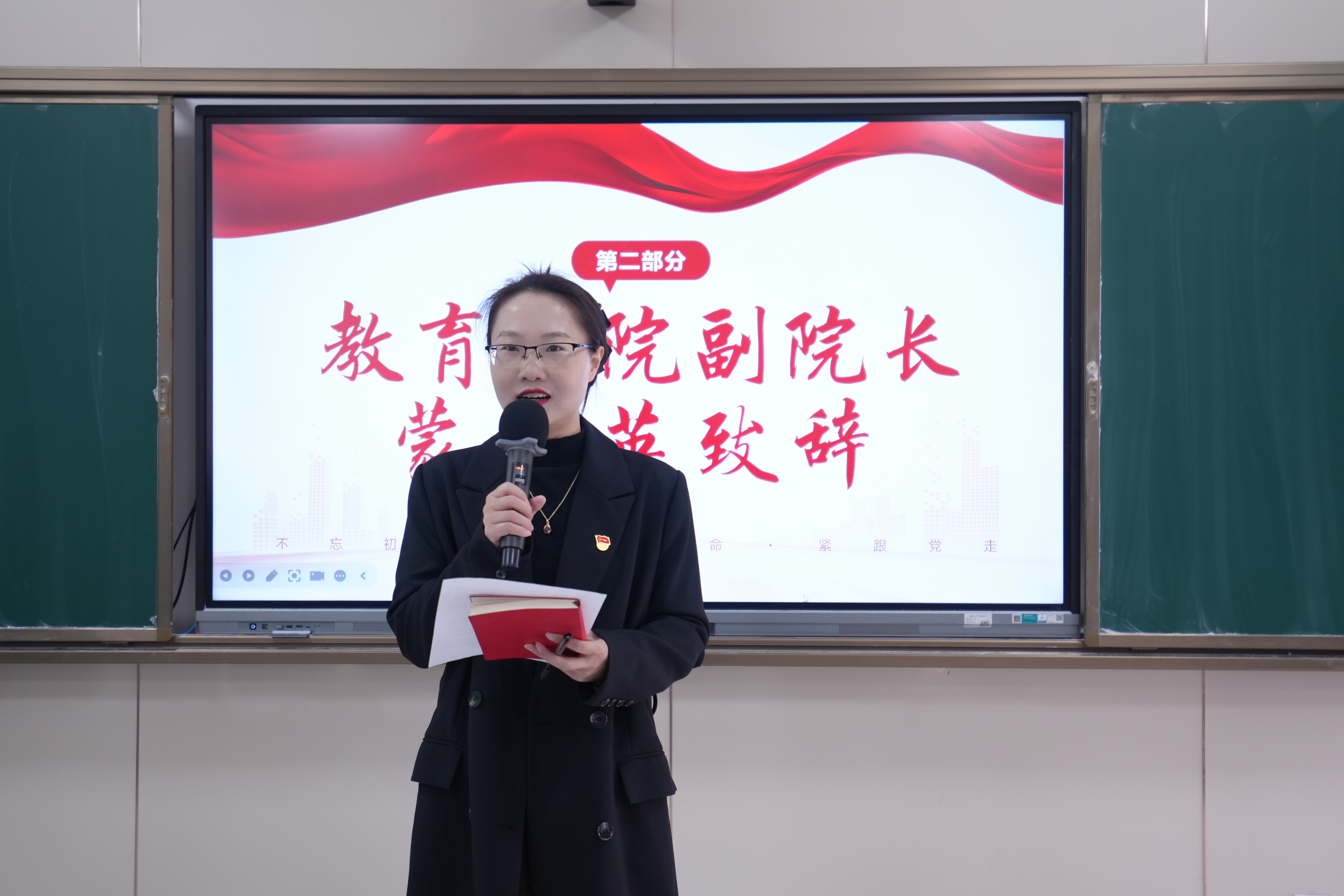 第二讲,教育学院副院长蒙剑英开展专题讲座,发出“向阳而行”寄语,勉励学员融青春理想于时代洪流、勇担使命,学员深受感召立志践行初心使命。