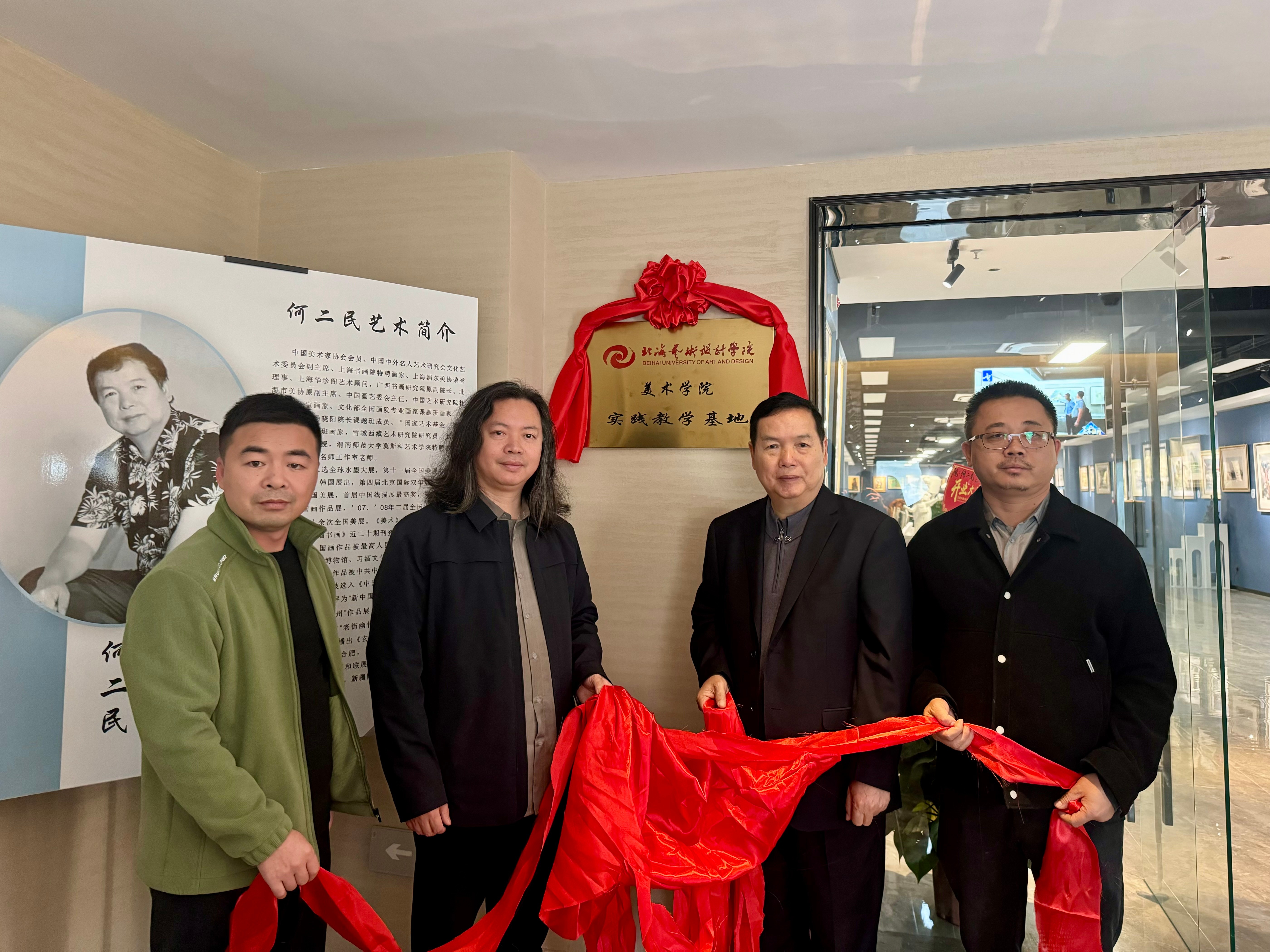 1219日下午,北海艺术设计学院美术学院一行人前往北海市何二民美术馆,共同参加了美术学院实践教学基地的揭牌仪式。出席此次仪式的领导包括学校常务副校长胡胜、学院执行院长龚为以及副院长陈建江。