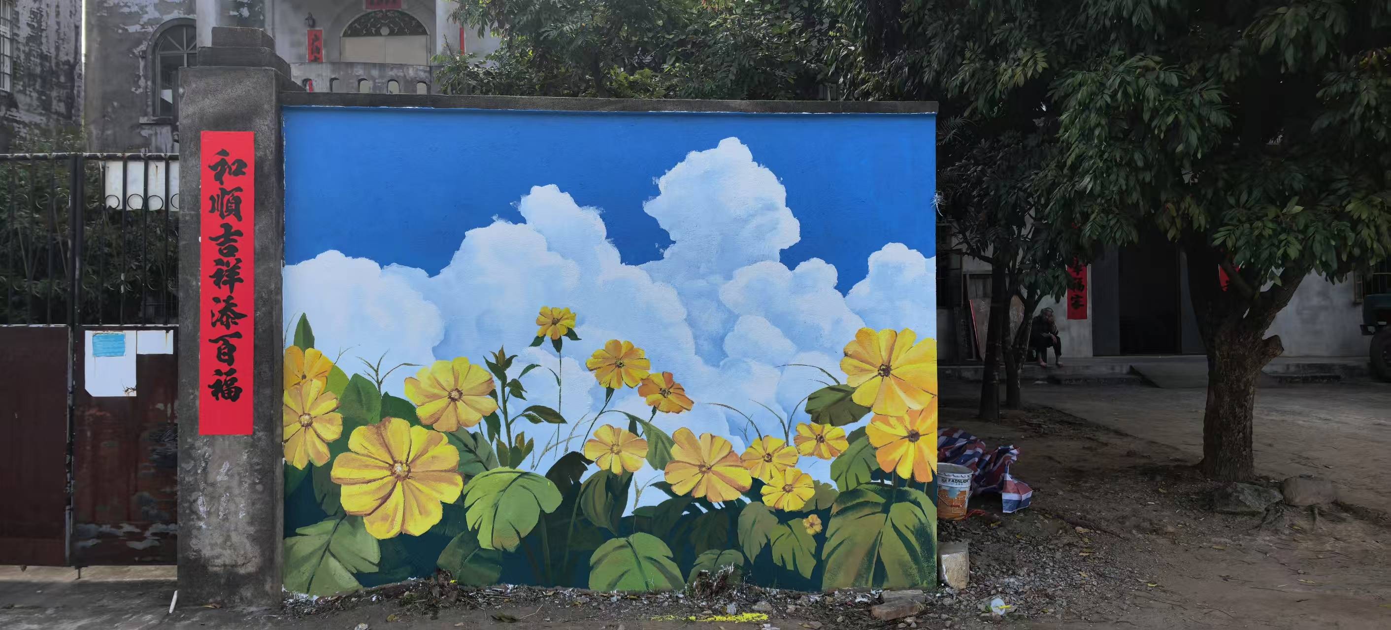井山村小洱海墙绘作品《格桑花开》