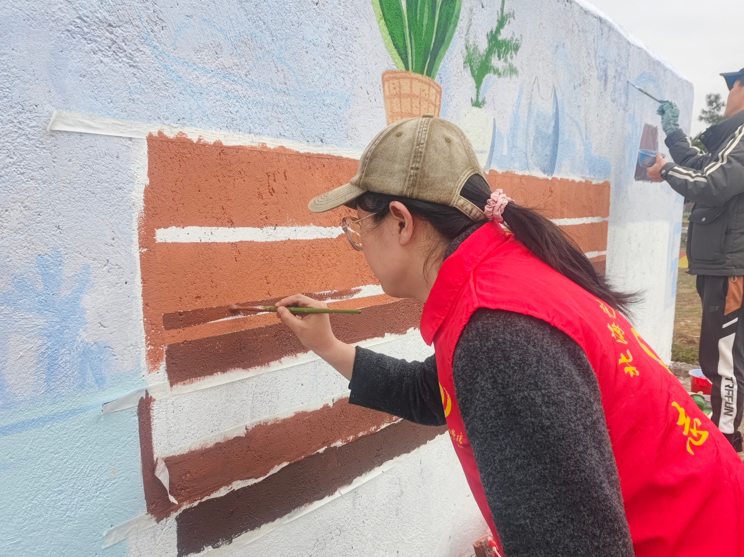 井山村小洱海墙绘学生绘制过程
