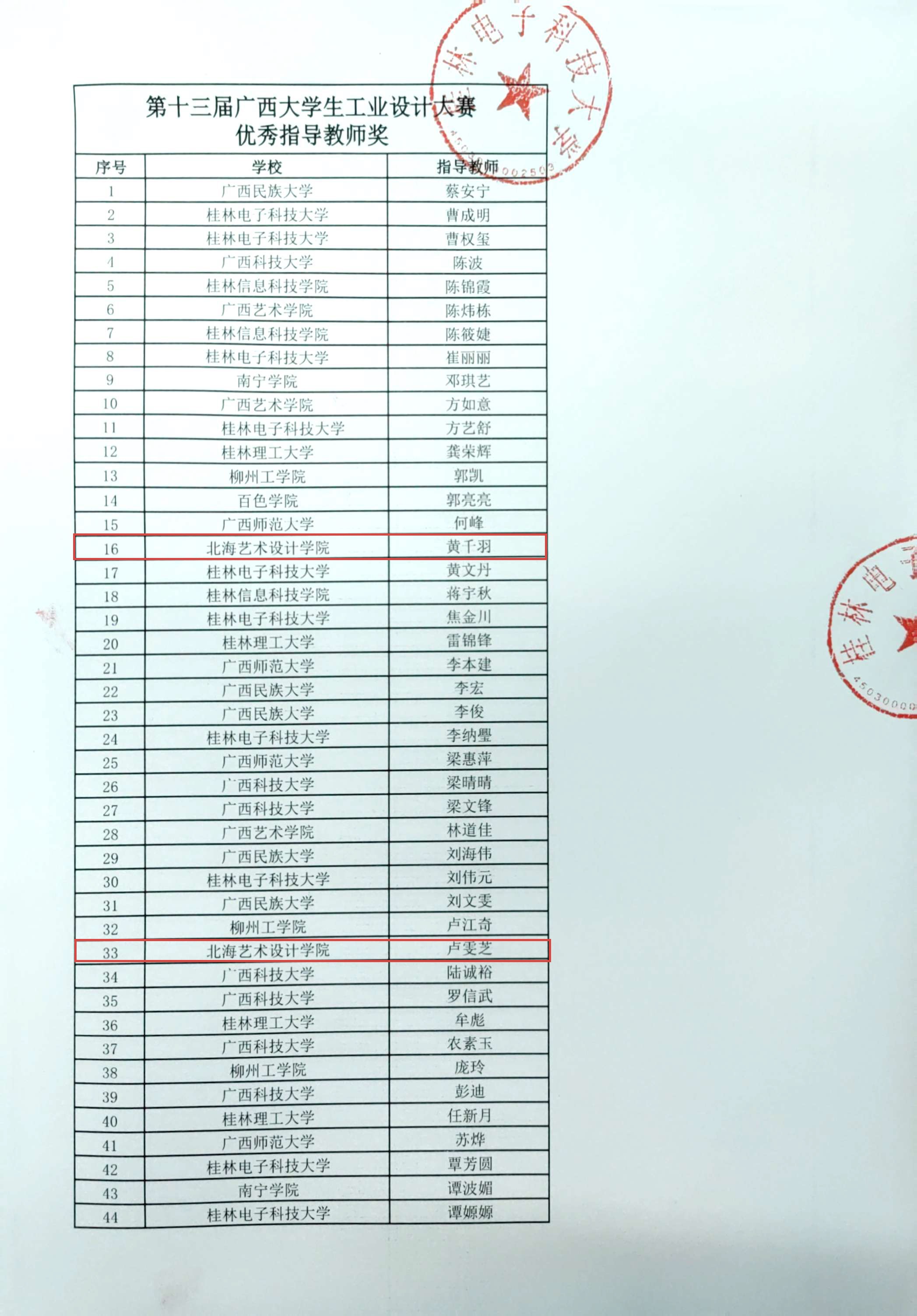 两位教师获优秀指导教师奖