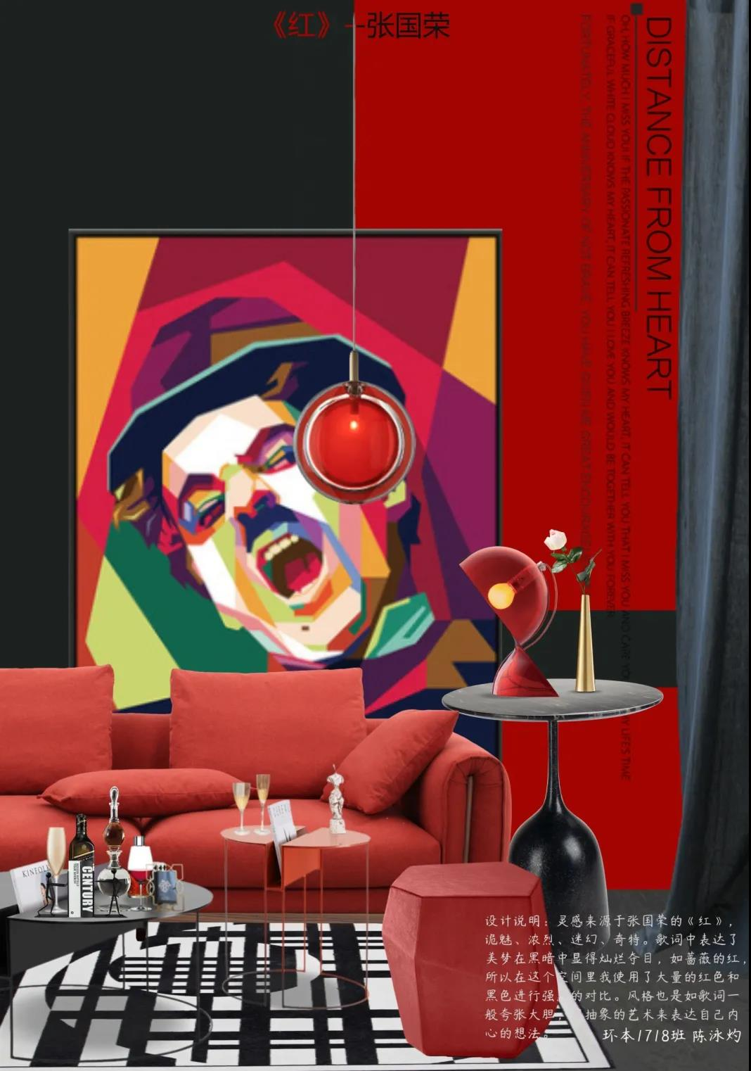 环艺1718陈泳灼 “红与黑”音乐主题客厅陈设