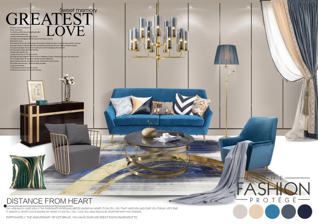 课程最终的设计任务是以疫情期间学生生活的居室空间环境为载体,以服务地区经济为己任,以反映其生活当地的特色地域文化为设计素材,完成一套具有地域特色家居陈设设计方案,其中包含方案的成本预算。同学们的作品大部分表现优良,能反映出学习态度端正和娴熟使用新的设计软件,设计理念先进,制作细致认真,具备发现问题、分析问题和解决问题的能力。学生对于陈设设计的课程体系及设计原理掌握较为深入具体,作品主题突出,风格鲜明,图示表现符合市场需求,顺利地完成了本次课程的教学任务。