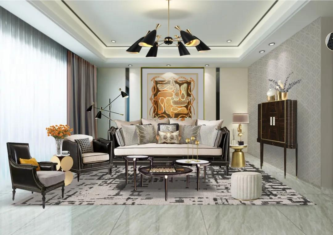 环艺1703张雪琪 美式轻奢风格客厅陈设