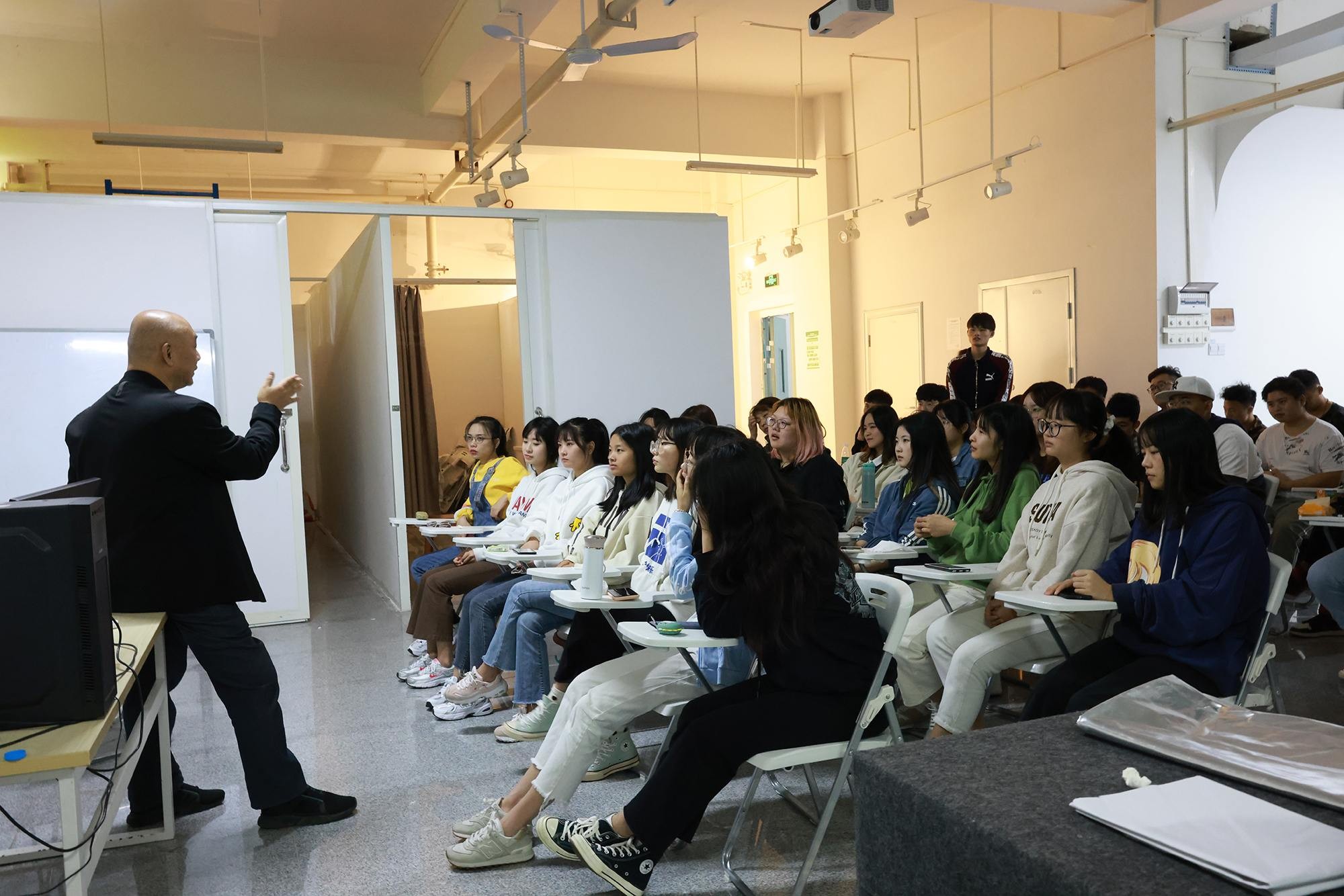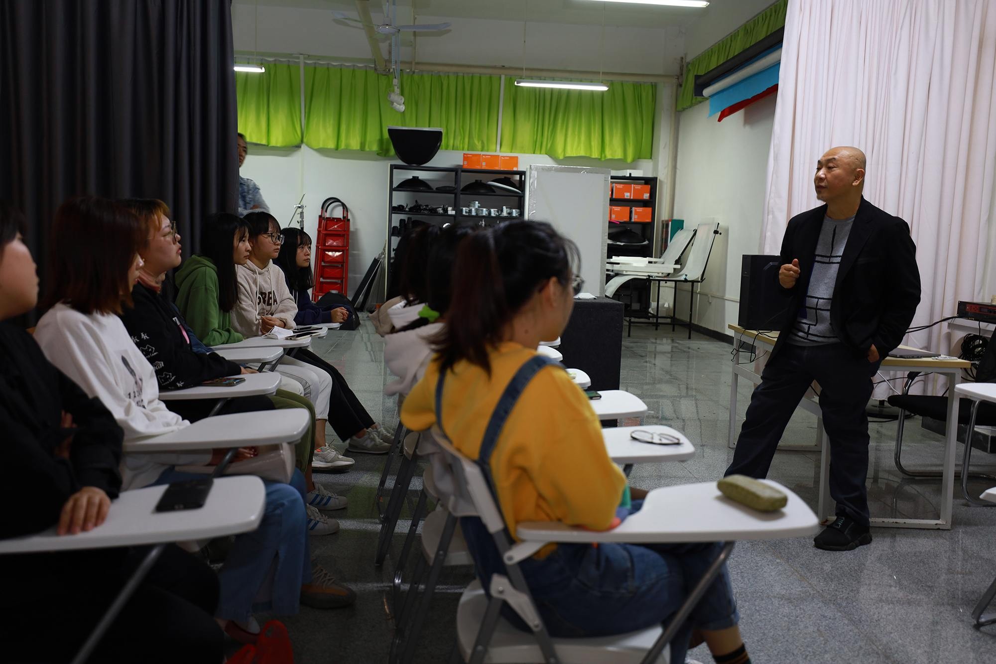 在摄影专业工作室给给学生做专业问题解答后,就“新时代下的多种思维逻辑”与同学们做了交流。