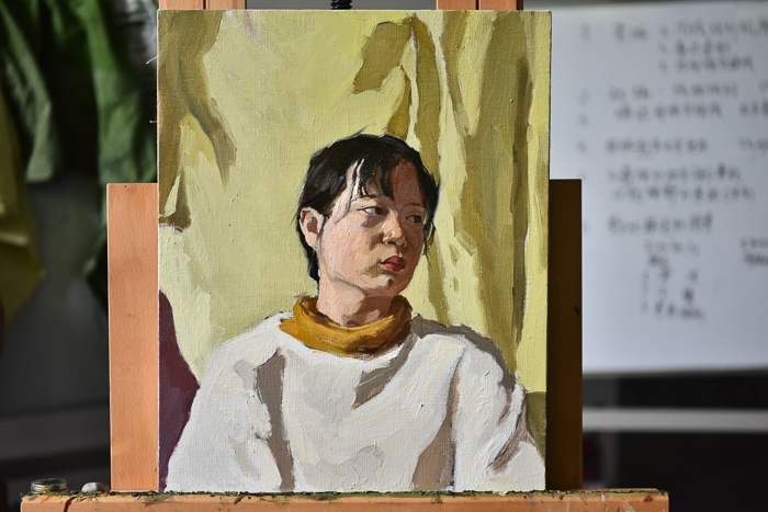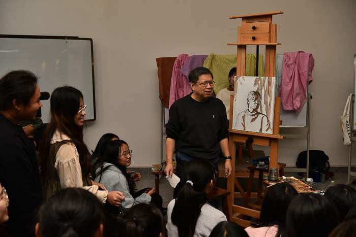 对美术学院的老师和学生代表进行了绘画基础培训,传授自己的教学方法。