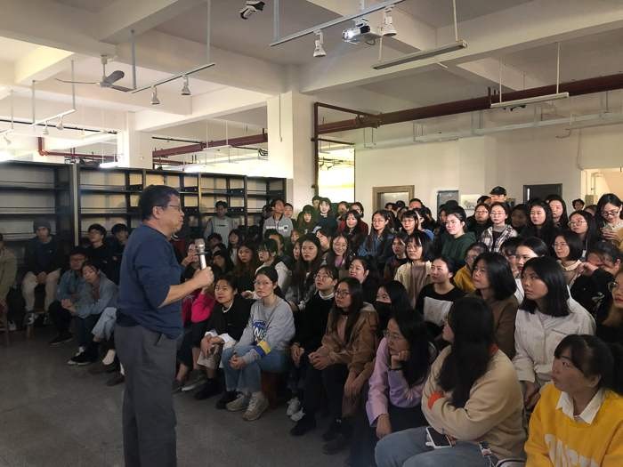 计宇教授认真了解绘画专业的教学情况和学生的绘画水平,与同学进行了热情交流,分享了自己在美国的经历与创作经验。