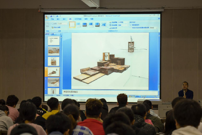 讲座开始前,王卓老师简单介绍了开学以来分别与三个年级雕塑专业同学的交流相处的感受,并且介绍了本次讲座的目的,他表示地域造就的偏差让很多同学对毕业创作感到很迷茫,以至于对课堂学了什么东西,自身达到了什么水平,掌握的技术和自我认知并不是很清楚。以此为目的,此次讲座内容主要分为三个方面:第一是“目的”,这也是最重要的一点,决定了同学们今后的行为;第二是“创作方法”;第三点是“展示”。