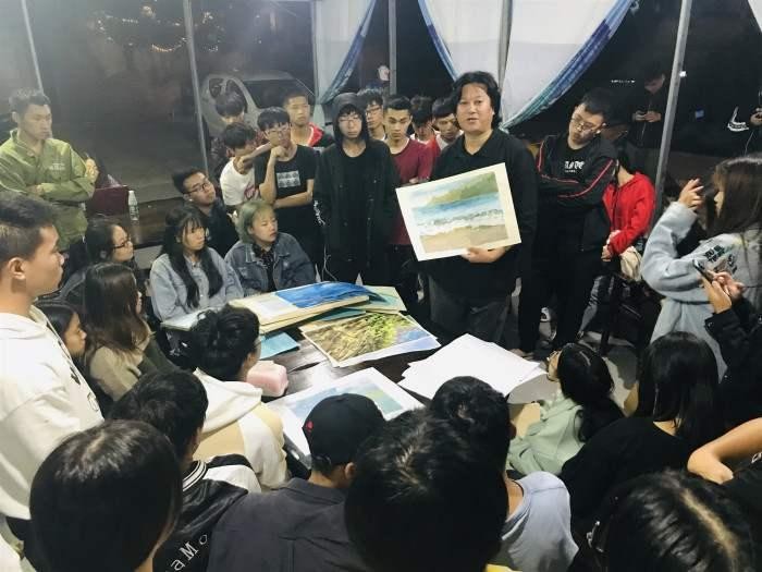 当天写生结束之后,晚饭之余邀请了各高校的教授前来进行作业讲评,教授们生动的教学表达使学生们受益匪浅。