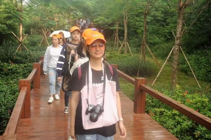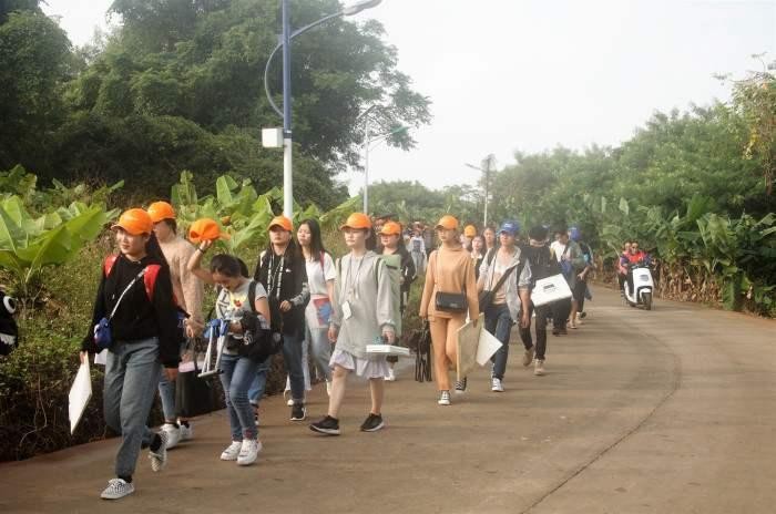 11月20日,全体师生通过栈道步行前往涠洲岛的主要景区——南湾鳄鱼山公园,并在景点集体合影。