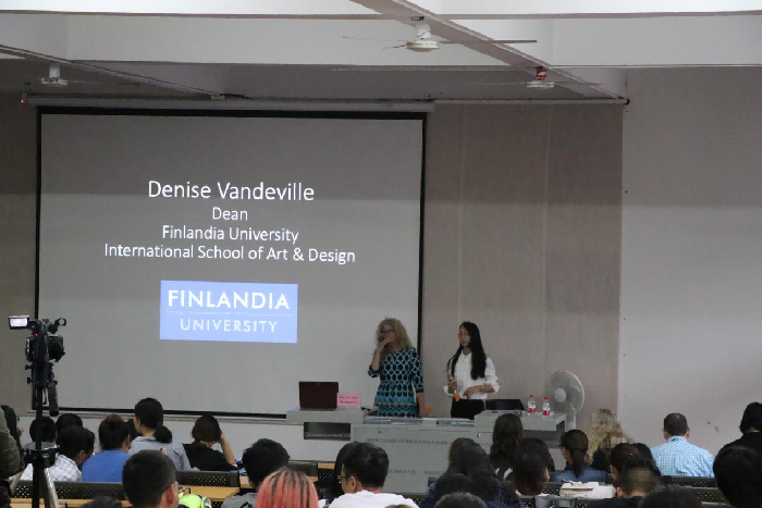 讲座正式开始前,丹尼斯院长请成斌副院长为全场师生介绍了一下芬兰迪亚大学。