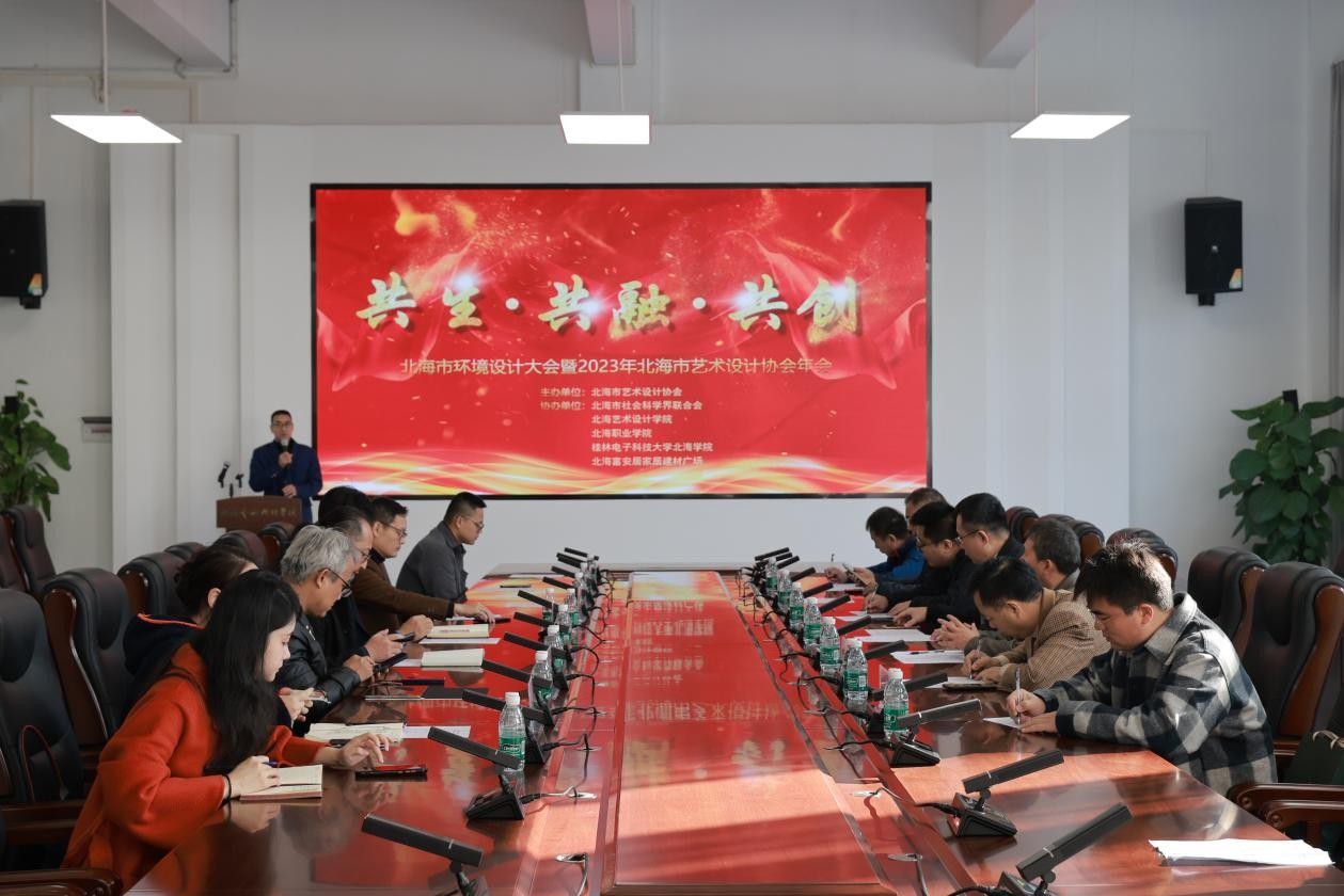 “共生.共融.共创”北海市环境设计大会暨2023年北海市艺术设计协会年会于2023年12月27日上午9:30在北海艺术设计学院南校区艺德楼8楼会议室顺利召开。此次活动由北海市艺术设计协会主办,有政府代表、高校代表、企业代表以及协会代表等各界嘉宾的到场参与。