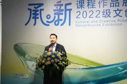 11月22日上午,设计艺术学院视觉传达设计专业 “承·新” 2022级文创产品设计课程作品展在学校南校区艺德楼8楼北侧展厅拉开帷幕出席开幕式的有:学校副校长陶立阳、桂林电子科技大学北海校区设计与创意学院院长葛俊杰、合浦汉代文化博物馆馆长廉世明、北海远见传媒集团副总经理王斌、北海远见传媒集团副总经理廖艺艺、北海银方健康产业有限公司副总经理崔玉丰、创新创业学院副院长陈渤水、设计艺术学院党总支书记黄锦、院长李林平、党总支副书记林秀琪、副院长白建强、李佩、邓渠成、吴慧霞,以及马振庆、郭强、彭馨弘、傅颖哲等教授及任课教师和2022级学生。开幕式由视觉传达设计专业教师王昳凡主持。