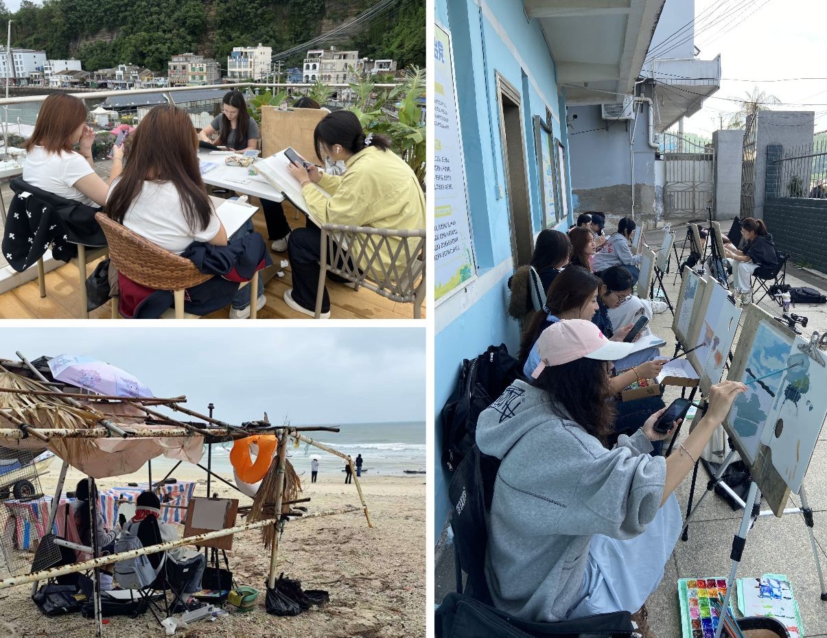 活动期间,学生足迹遍布红色广场、鳄鱼山火山地质公园、南湾码头、盛塘村教堂等地,通过自然、人文景观的观察、描绘与创作,提升艺术感知力和创造力不仅加深对专业知识的理解,还激发对自然和生活的热爱,培养细致观察和独立思考的能力。