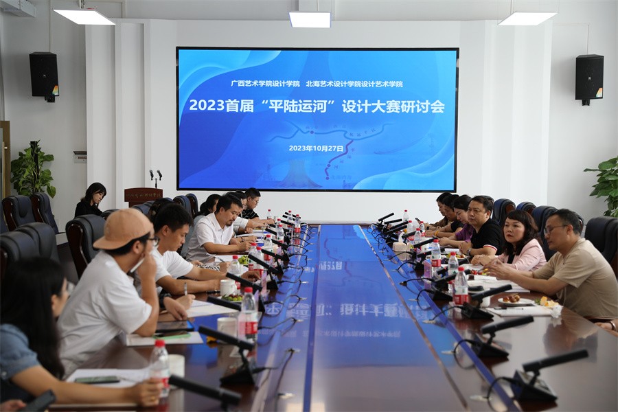10月27日上午,我校与广西艺术学院在学校南校区艺德楼八楼会议室顺利举行2023首届“平陆运河”设计大赛研讨会。广西艺术学院设计学院党委书记、副院长陆生发,副院长吴红梅,视觉传达系主任熊燕飞,视觉传达系副主任黄仁明,学科办副主任马全福,视觉传达系专业教师韦达、吕虹霖,我校设计艺术学院院长李林平、副书记林秀琪、视觉传达设计教研室主任张志、副主任陈莎及专业教师代表参加会议。会议由设计艺术学院副院长李佩主持。